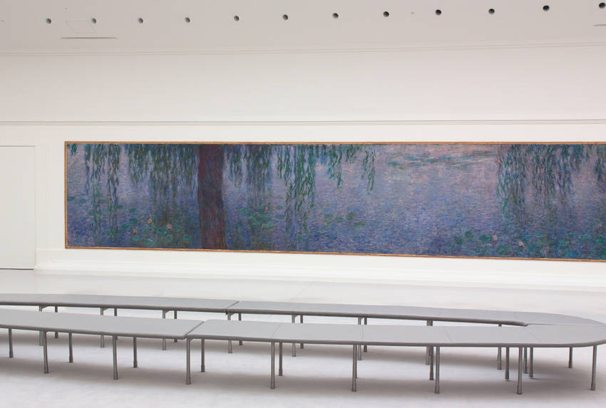 在完成第二组《睡莲》系列之际,莫奈已经将目光投向更远的方向,设想在此基础上迈向一种更为抽象的表达,构想一种沉浸式的“宏大装饰”。1909年,他向罗杰·马克斯透露了这一多年后才得以实现的计划:“以睡莲作为房间中唯一的装饰主题。沿着墙面展开,在单一母题的环绕之中,这一主题将营造出一种无尽整体的幻觉——没有地平线、没有岸边的水域。在这里,因过度劳作而紧绷的神经可以放松下来,在那静谧水面的抚慰中安歇……成为一处宁静冥想的避所。”