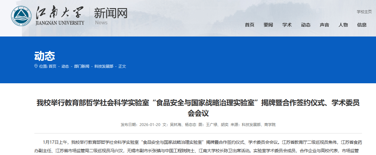 就在前几天,具体是一月十七号,学校那边有个新动作,挂出了“食品安全与国家战略治理实验室”的牌子。