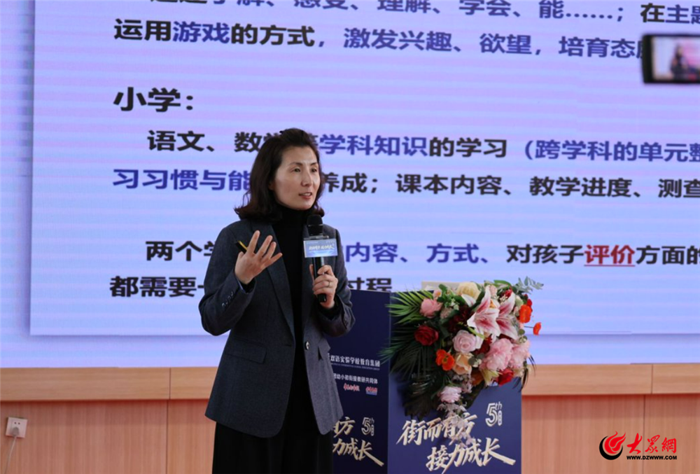 在幼小衔接专场,众多专家和一线教师们齐聚,为家长们“头疼”已久的衔接难题支招答疑。山东青大教育集团副总经理、青岛大学双语实验学校教育集团总经理赵霞指出,青岛大学双语实验学校教育集团幼小初衔接教研共同体成立四年来,通过多年持续科普公益,为数千家庭提供了教育衔接指导。今年论坛规模扩展至双会场,将继续从更多维度为家长们提供衔接专业支持。青岛市市北区教育研究发展中心学前教研员朱平为家长们提供了一个学前教育“行动指南”,“学前的孩子们,要注重行动力的培养,要充分放手、鼓励孩子、让孩子成为能做、会做、有自信的人。”朱平说道。