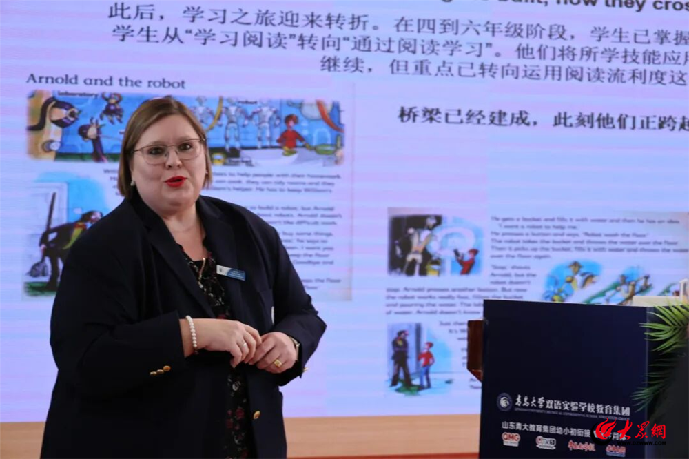 在衔接阶段,很多家长关心孩子英语学习如何入手,英语阅读怎么读?在本次论坛现场,家长们也沉浸式的得到了问题的答案。青岛大学双语实验学校外教主管Mardi谈到外教教学提到,在日常教学中,外教很注重从幼儿园到一年级的平稳过渡,从“通过歌曲故事爱上语言”自然衔接至“系统拼读学习”,在兴趣与能力之间为孩子们搭建桥梁,“我们不只是教授阅读,我们是在培育真正的阅读者。”Mardi强调阅读是解锁一切学科与认知的大门,教学的本质是赋予学生理解世界的钥匙。青岛大学教授段春生则从拔尖人才培养的青岛路径的角度,阐述了如何在不同阶段有所侧重的培养孩子竞技能力。他通过日常上课的具体案例展示,指导家长如何将孩子日常的兴趣,转化为可持续的探究能力和初步的逻辑思维,为系统化学习做好平滑过渡。
