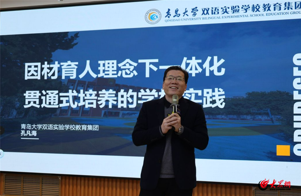 在小升初专场,青岛大学双语实验学校教育集团总校长孔凡海深刻解读了在“因材育人”理念下的一体贯通式实践。他剖析了真正的九年一贯制如何通过课程、活动与评价的体系化设计,支持每个孩子获得连贯性的成长,实现从“学段叠加”到“素养贯通”的质变。