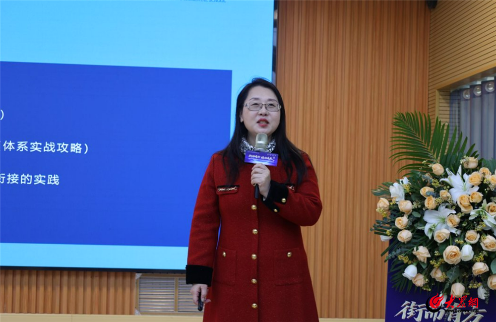 齐鲁名师、青岛大学双语实验学校校长邓晓红以《梦开始的地方》为主题,为家长们厘清了核心理念。邓校长以多年的教育从业经验建议家长,教育应“让孩子成为自己成长的主人”,让孩子在这个特殊的衔接阶段学会管理,学会创造、学会担当。在人工智能时代,教育不应仅是知识传递,更应回归人的本质,培养具有好奇心、创造力、协作力与心理韧性的完整的人。学校应成为孩子“梦开始的地方”,通过自治、自能、自创的校园生态,主动、探究、跨界的课堂模式,以及温暖、规矩、平台的成长环境,赋能每个孩子“成为更好的人”。而在小学的学习中,PBL项目式学习,正是让学生在复杂情境中学会整合资源、协作创新,这是AI时代不可或缺的核心素养。她强调,从幼儿园到小学的教育要更加注重能力的培养,要尊重成长规律,让人成为人。